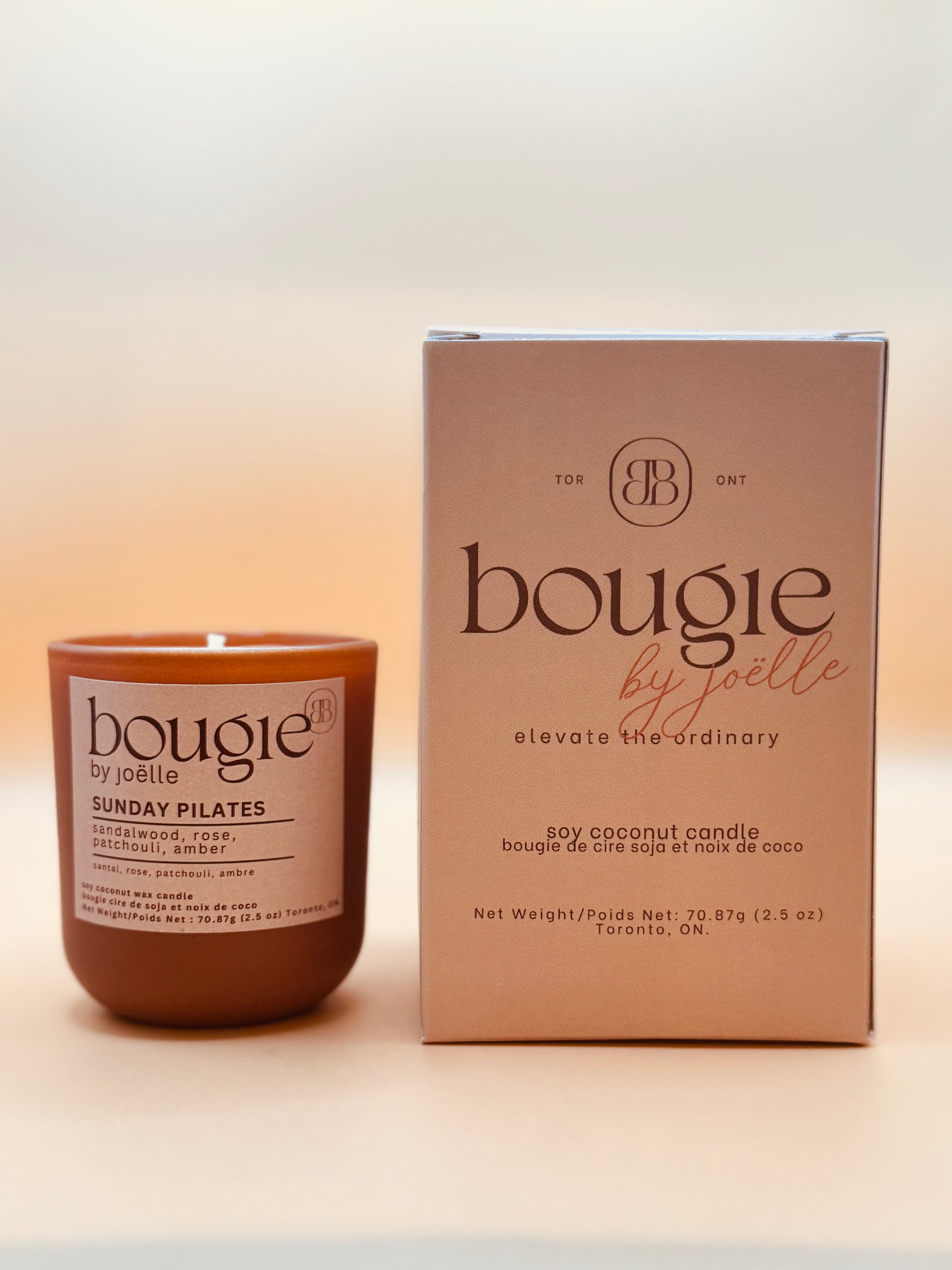 Sunday Pilates was my first purchase in the 'bougie by joëlle' candle line and it did not disappoint. Much like a Pilates class, the candle is soft and strong all at once, delivering delightful notes of sandalwood, rose, patchouli, and amber (four of my personal favourites). Safe to say 'Sunday Pilates' has become a staple scent in my household.